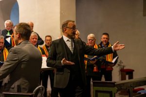 Unter gekonnter Einführung und Moderation unseres Chorleiters Karsten Rentzsch setzten wir das Konzert mit dem sakralen Lied "Verleih uns Frieden" von Matthias Nagel fort.